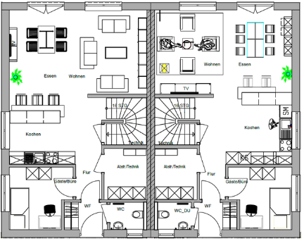 In Osterburken entstehen zwei moderne Doppelhaushälften mit Einliegerwohnung und Platz für 2 Parteien. Auf einer Grundstücksfläche von ca. 754 m² entsteht das Wohnhaus mit einer Wohnfläche von ca. 208 m² pro Haushälfte. Für jede Haushälfte sind 4 Stellplätzen vorgesehen. Geplant ist eine massive Bauweise mit Walmdach.